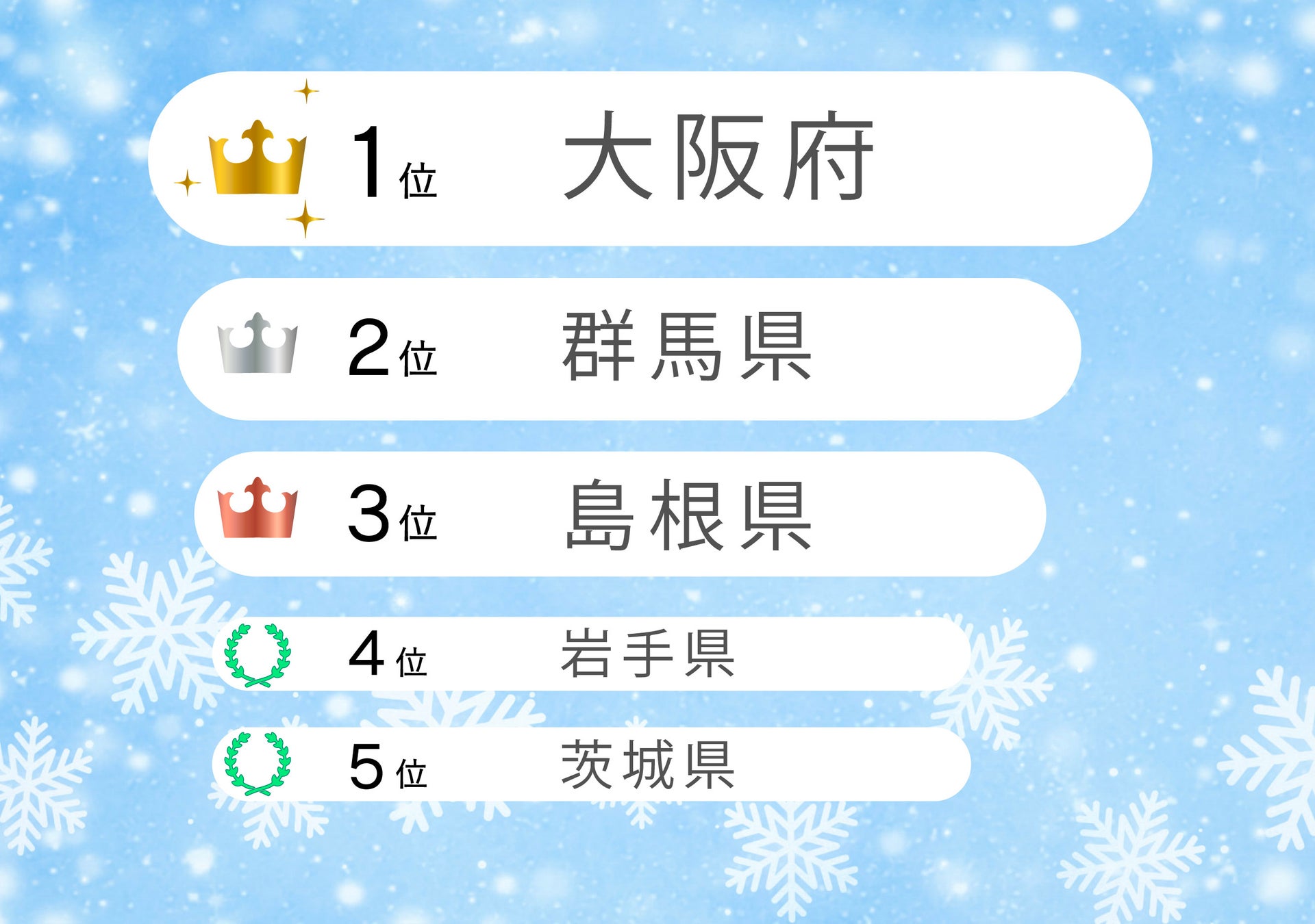 2022年1月度、質の高い睡眠をとっている都道府県1位は大阪府、2位 群馬県、3位 島根県、4位 岩手県、5位 茨城県となりました。