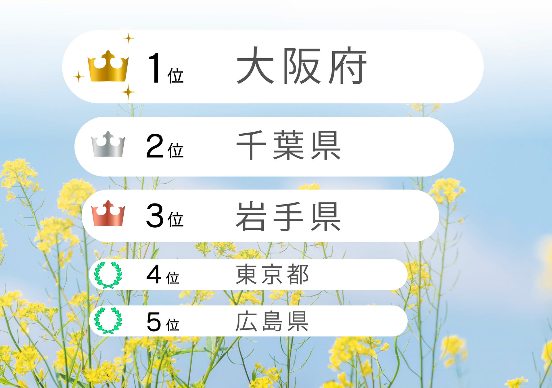 2022年2月度、質の高い睡眠をとっている都道府県1位は大阪府、2位 千葉県、3位 岩手県、4位 東京都、5位 広島県となりました。