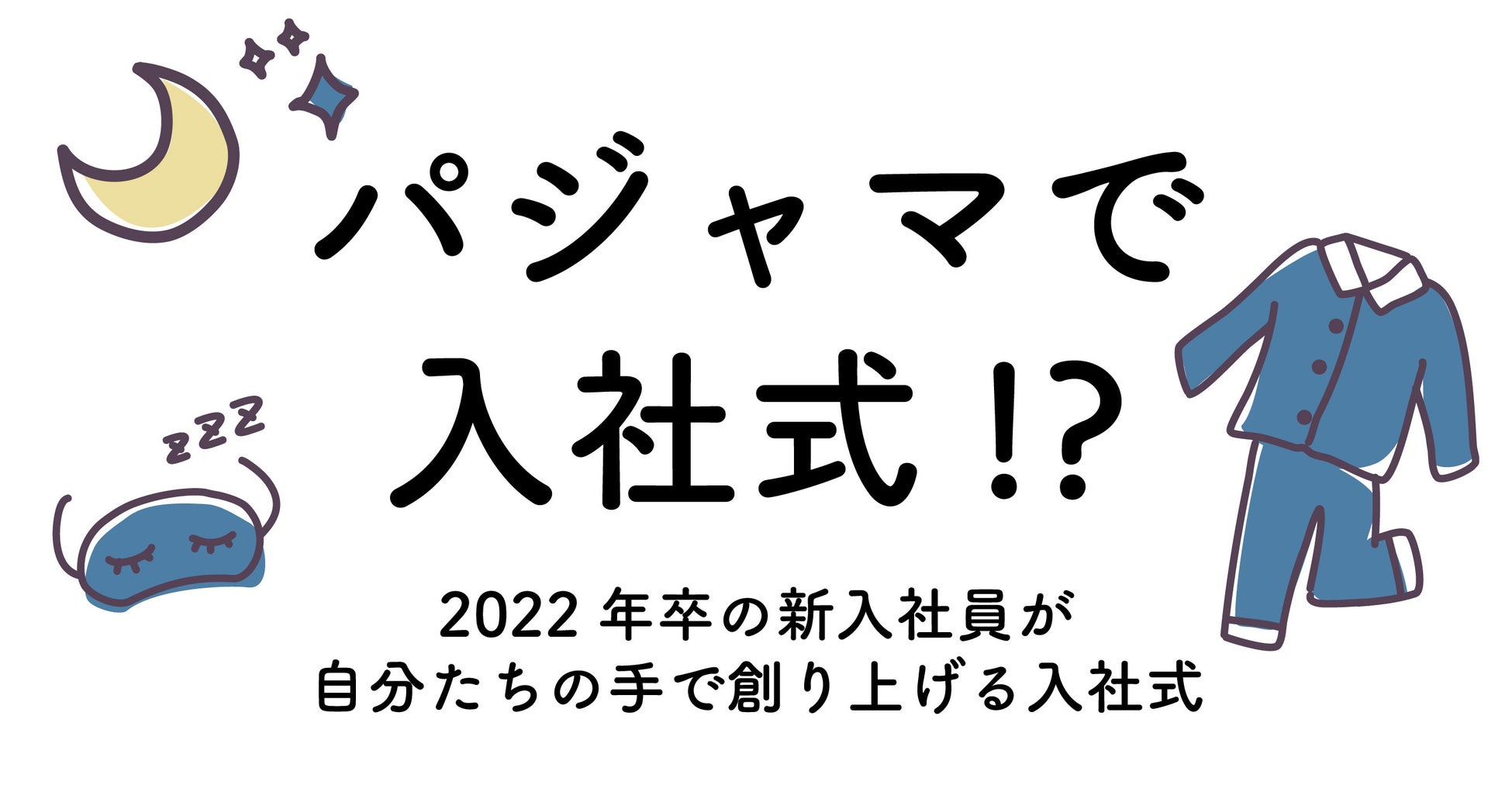 そこから「こんなことをやりたい!」とアイデア出しが始まり、寝具を扱う会社だけに「パジャマを着たい」という意見に賛同が集まり実現することになりました。入社式当日はスーツで出社して記念写真を撮影した後は、ずっとパジャマで式を過ごすことになります。