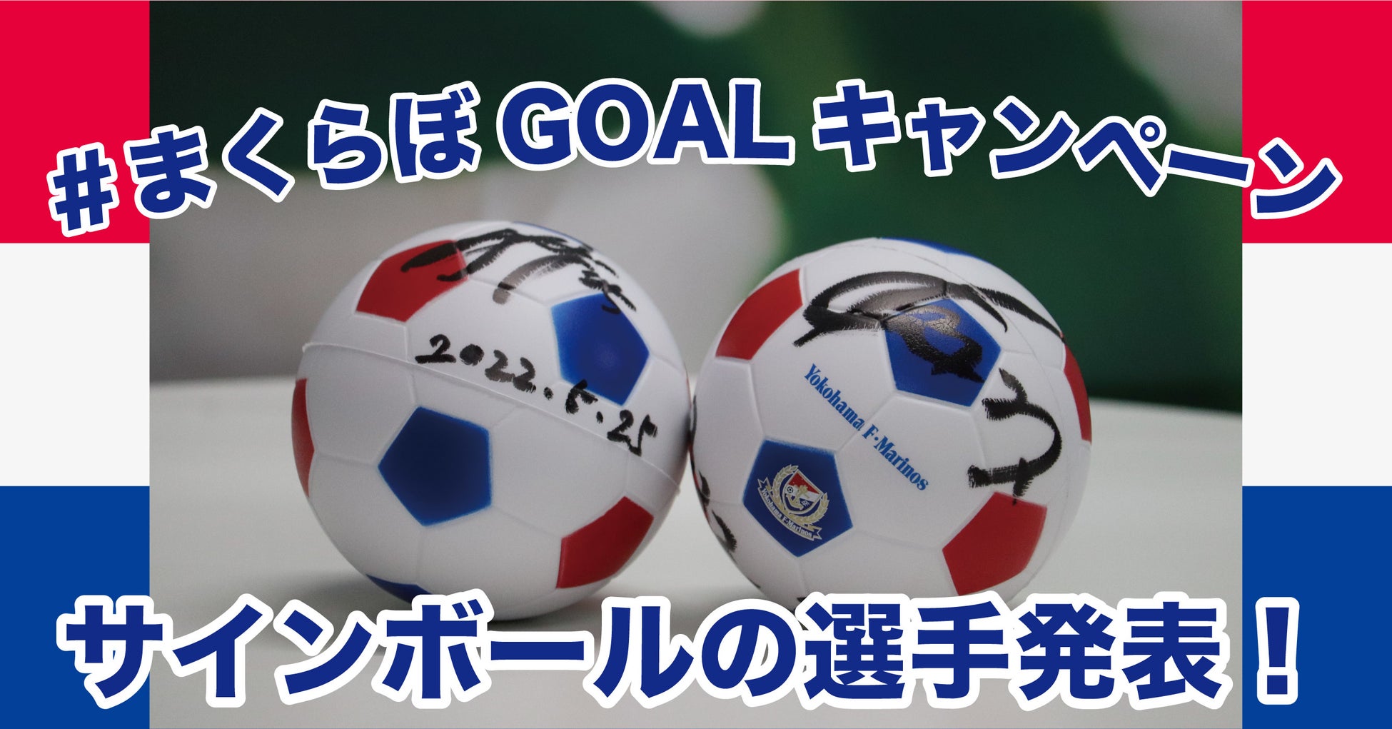 昨シーズンに引き続き、ファンやサポーターの皆さまと一丸となってチームを応援する「#まくらぼGOALキャンペーン」をまくらぼ公式SNSにて実施しています。このキャンペーンは、横浜F・マリノス勝利時の得点がプレゼント当選数となり、点を入れれば入れるほど当選者が増えるシステムです。当選者には、まくらぼのオーダーメイド枕ギフト券と選手の直筆サイン入りスクイズボールをプレゼントしています。