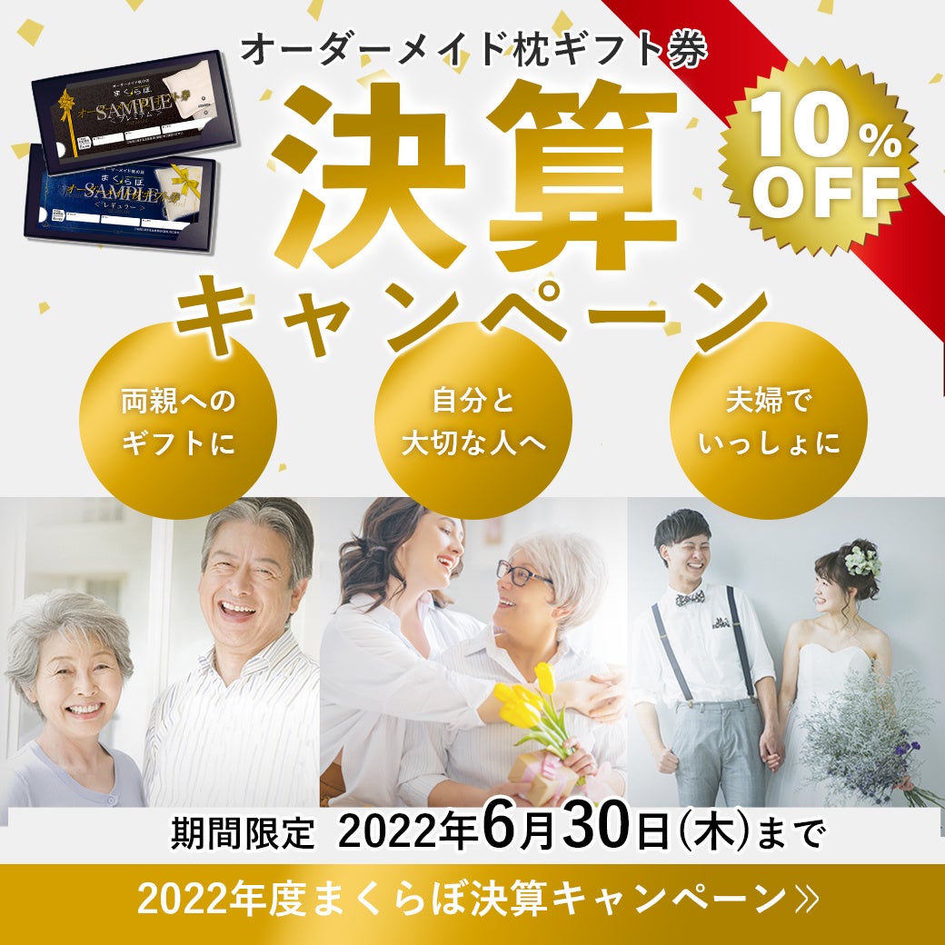 オーダーメイド枕の店まくらぼを運営するFutonto株式会社(本社:東京都町田市 代表取締役社長:齊藤淨一、以下Futonto)は、創業11期目の決算を迎える6月末に向けて、2022年6月20日から6月30日まで「オーダーメイド枕」を作成できるギフト券を2点購入で10%オフとなる決算セールを開催しております。